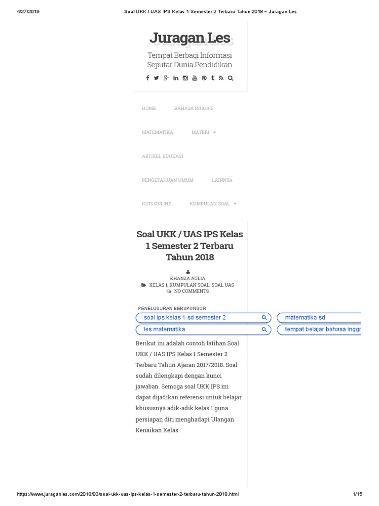 Soal uas matematika kelas 6 semester 2 juragan les. Check spelling or type a new query. Maybe you would like to learn more about one of these? We did not find results for: