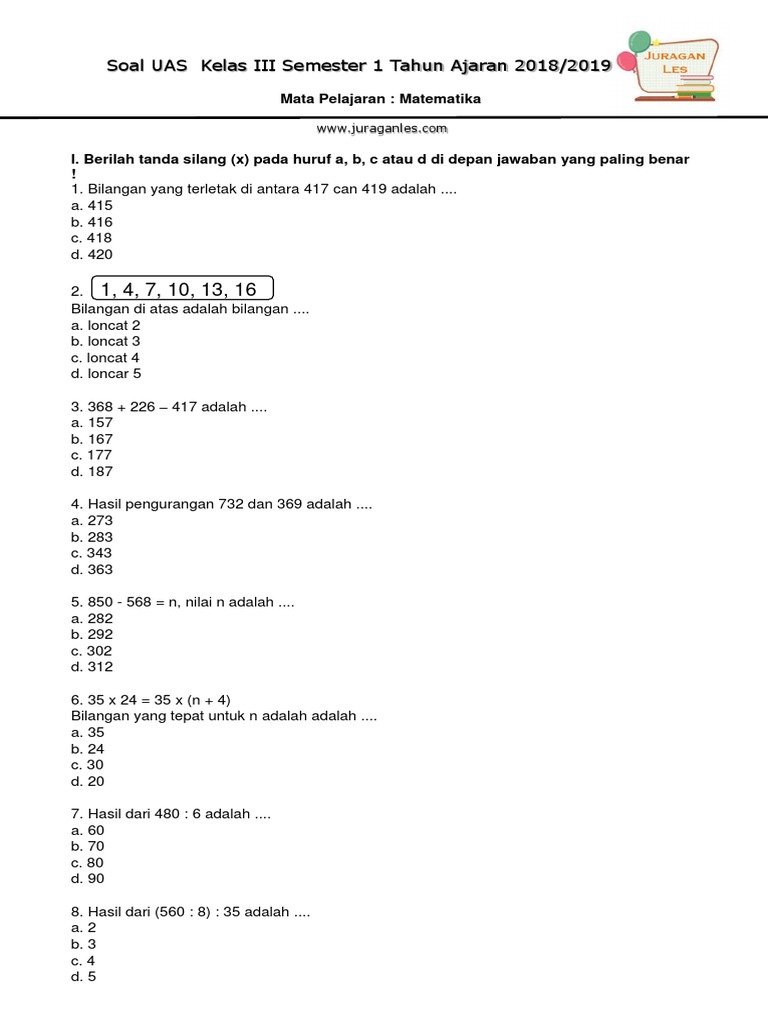 Soal Uts Matematika Kelas 3 Semester 2 Terbaru Tahun Ajaran 2018 2019 Juragan Les from 1.bp.blogspot.com Maybe you would like to learn more about one of these? Check spelling or type a new query. We did not find results for: Soal uas matematika kelas 6 semester 2 juragan les.